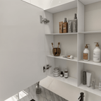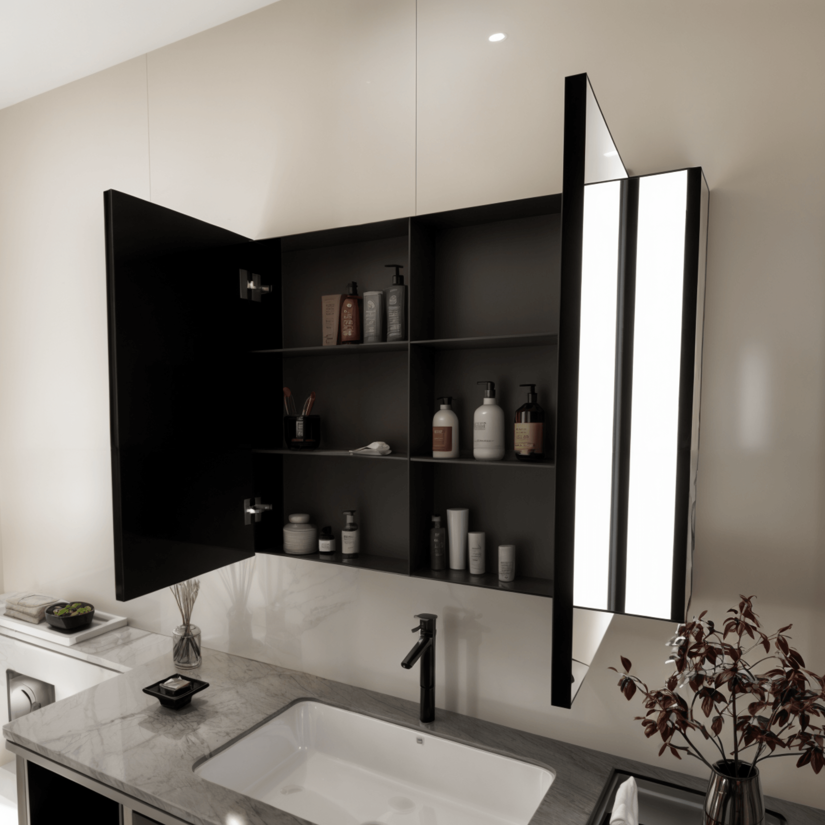 - Conservazione pratica: armadietto integrato per organizzare i tuoi prodotti di bellezza e igiene.